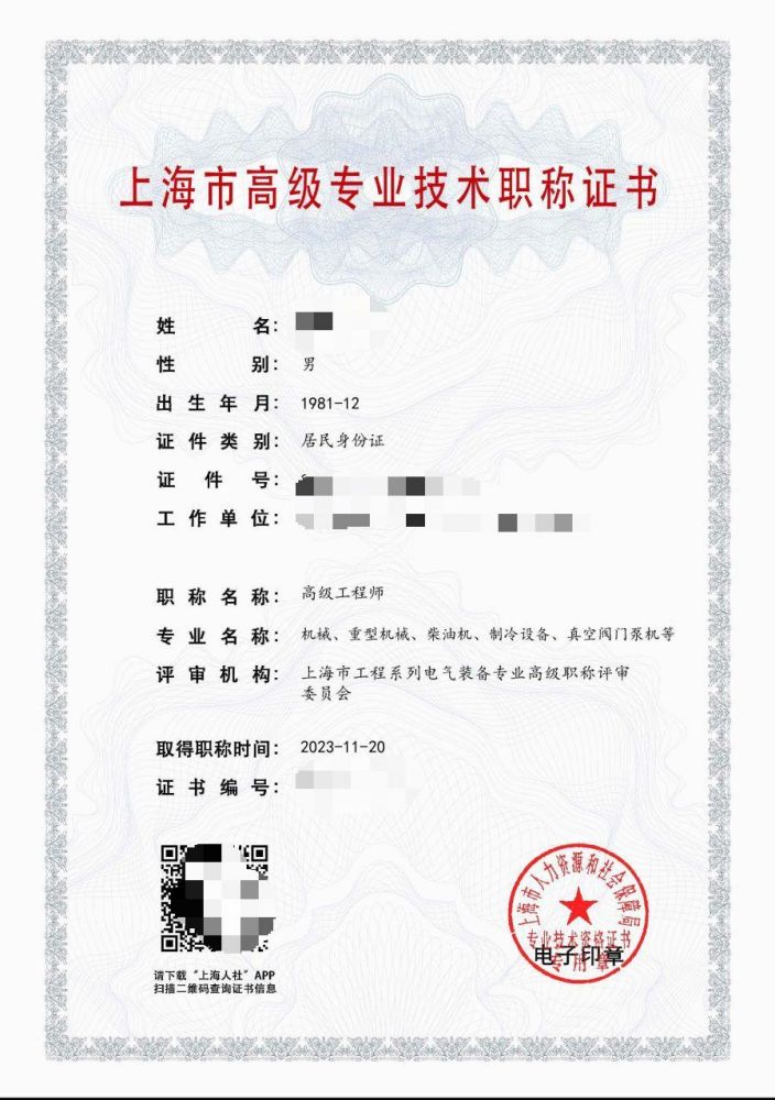 2023年高级上海电气(机械、重型机械、柴油机、制冷设备、